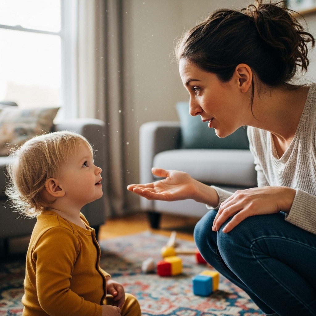Toddlers process language slowly. Long explanations confuse them and often increase frustration. Use simple phrases like “Shoes on,” “Hands gentle,” or “Food stays on the table.” Clear, calm language helps toddlers understand expectations without feeling overwhelmed.