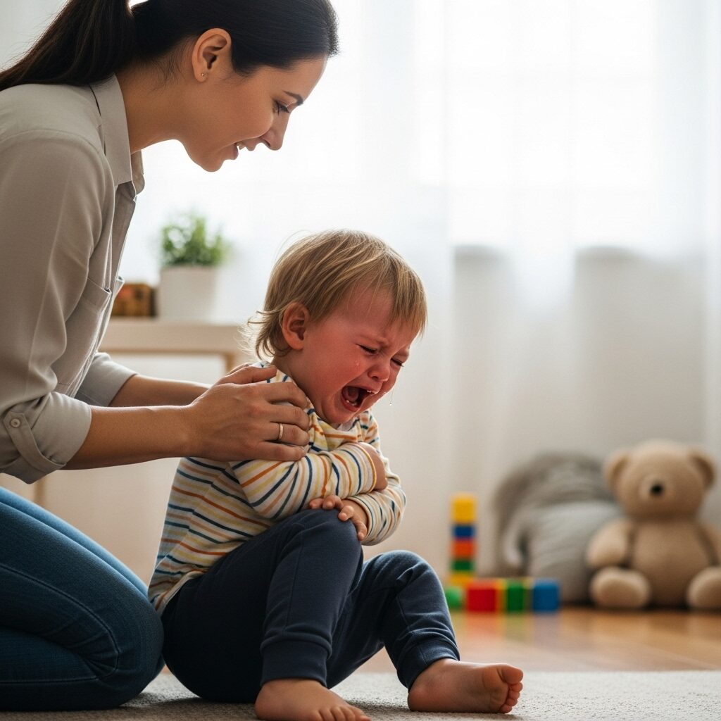 When tantrums happen, stay calm and present. Acknowledge feelings without giving in to unsafe behavior. Saying “I see you’re upset, I’m here” helps toddlers feel understood and supported while they learn emotional regulation.