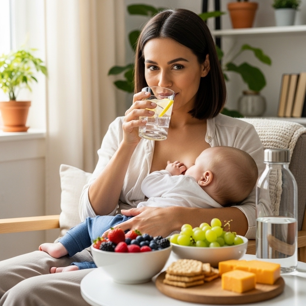 Your body needs extra fluids and nutrients while breastfeeding. Drinking water regularly and eating balanced meals supports milk production and keeps your energy up.