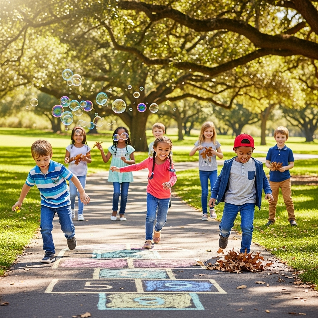 Outdoor play is essential for kids’ physical development, and it doesn’t have to be complicated. Simple activities like sidewalk chalk drawing, scavenger hunts, bubble play, or nature walks encourage movement and exploration. Kids love collecting rocks, leaves, and sticks, turning a simple walk into an exciting adventure.