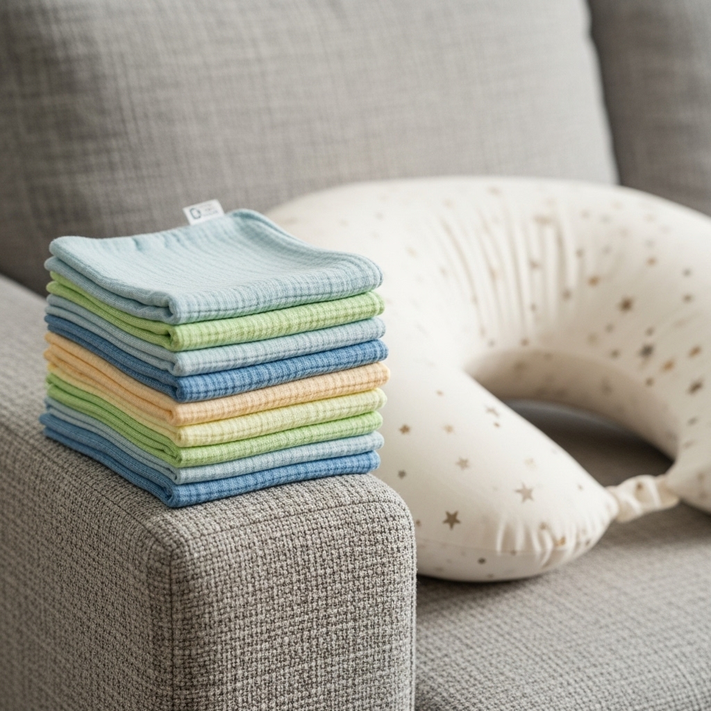 Most moms underestimate how many burp cloths they’ll need. Spit-up happens everywhere—during feeds, diaper changes, cuddles, and even sleep. Keeping burp cloths in the living room, bedroom, nursery, and diaper bag prevents messes and outfit changes.